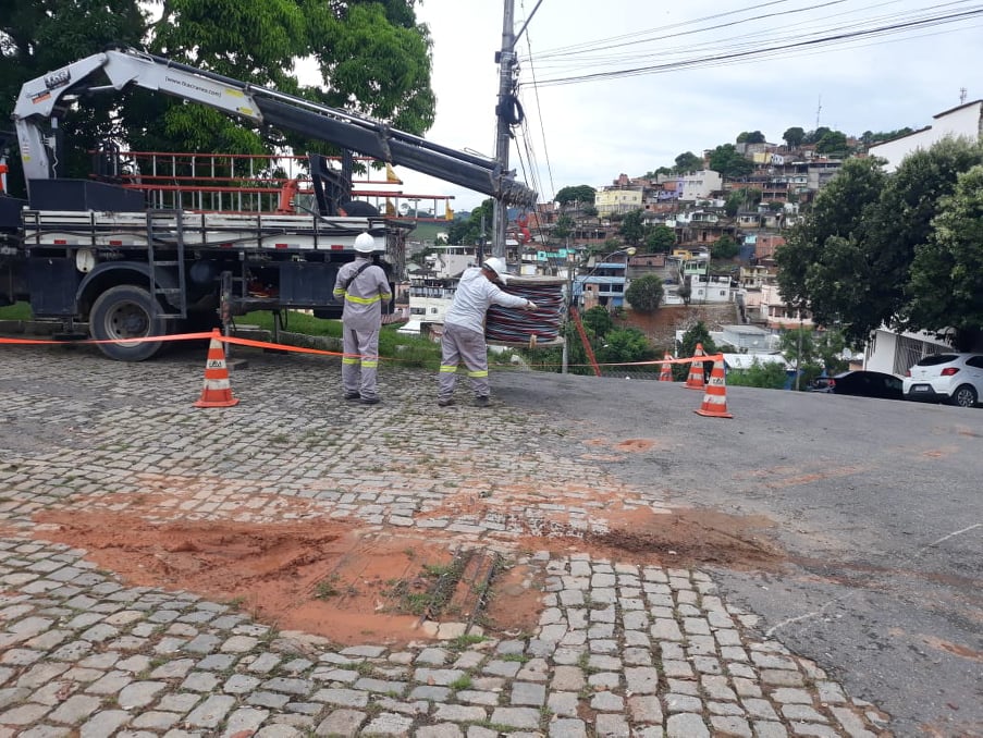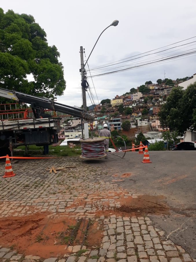 A EDP Escelsa está realizando melhorias na rede de energia elétrica na Rua Padre Zacarias para atender a antiga escola Erasmo Braga, onde funciona atualmente a Secretaria Municipal de Educação.