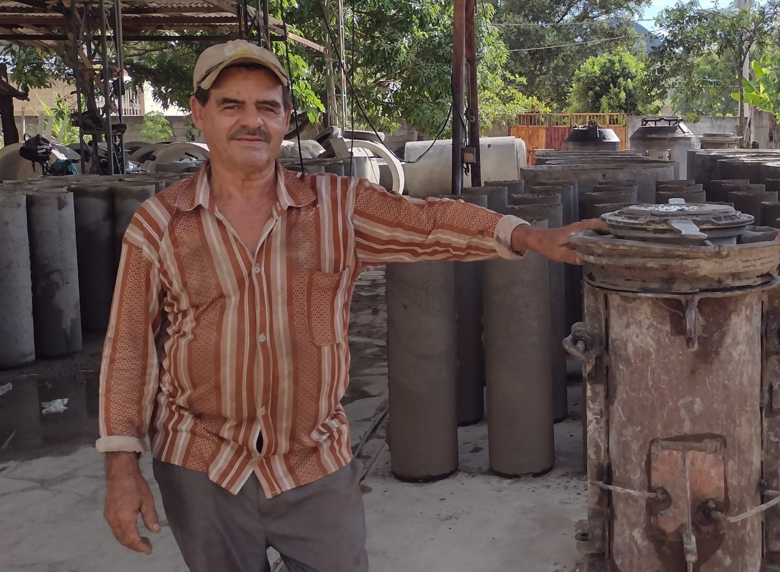 Encarregado do setor, o servidor Wilson Ribeiro de Matos, o Baixinho, contra que entrou na Prefeitura na primeira gestão de Enivaldos dos Anjos e logo foi para a fábrica de manilhas, onde está há 34 anos.
