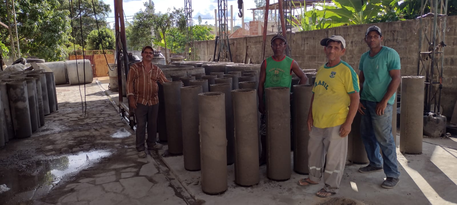 Ao todo, cinco servidores trabalham diariamente na produção de manilhas: Adelino Gomes de Oliveira, Josimar Ramos Fulanete, Carlos Nei Fraga de Paula, Manoel Messias Vieira da Silva e o encarregado, Baixinho.