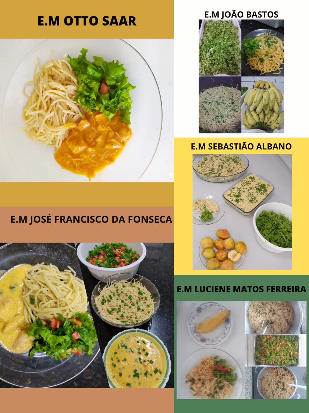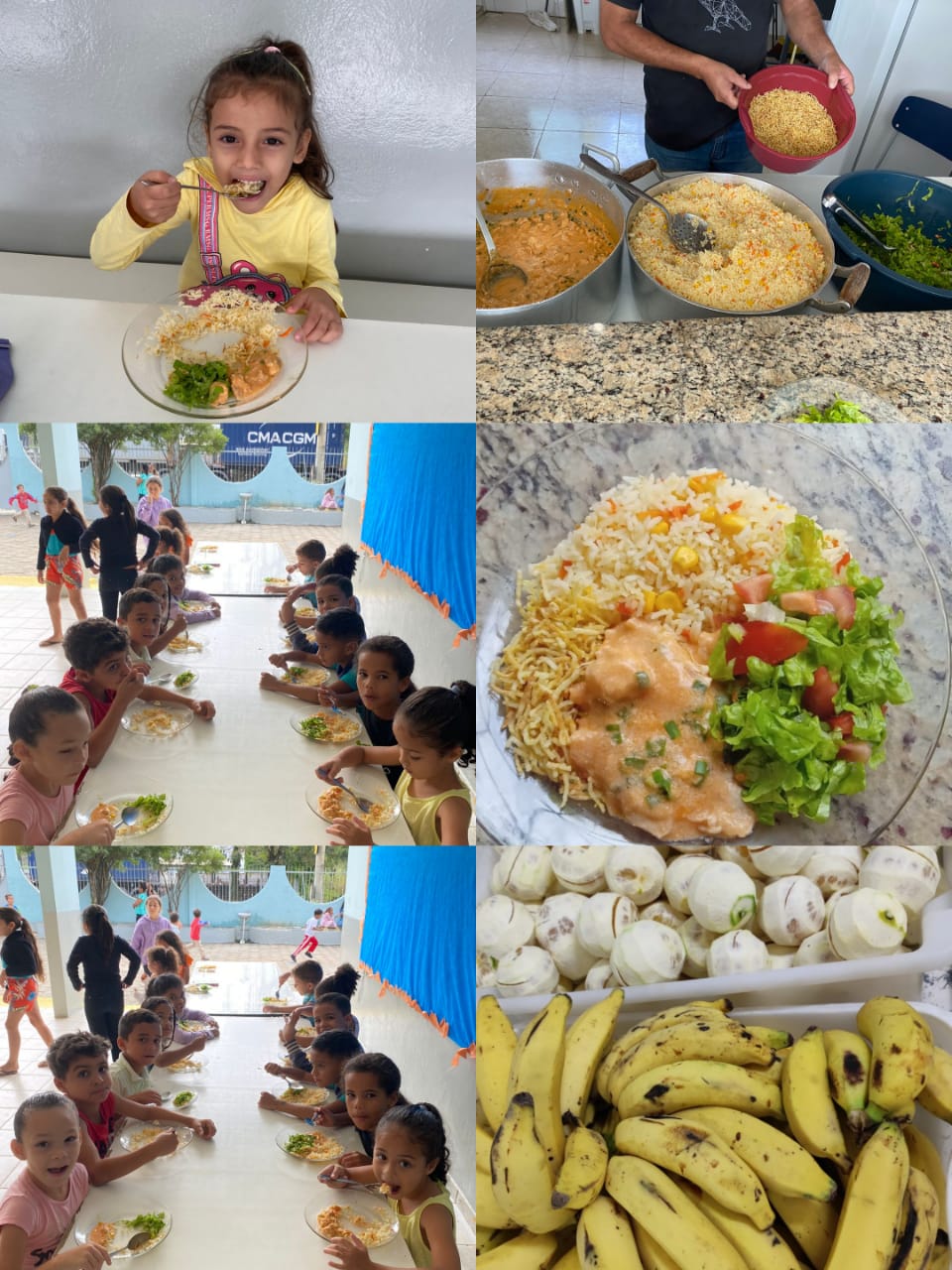 A elaboração dos cardápios leva em consideração a faixa etária atendida (berçário, 1 a 3 anos, pré-escola, ensino fundamental e turno integral). Os alunos da educação infantil regular (creches) recebem 2 refeições no período matutino (café da manhã e almoço) e 1 refeição no período da tarde (lanche da tarde), os alunos do turno integral 4 refeições diárias (café manhã/fruta/almoço/lanche da tarde) e para alunos do ensino fundamental regular 1 refeição (lanche manhã ou tarde).