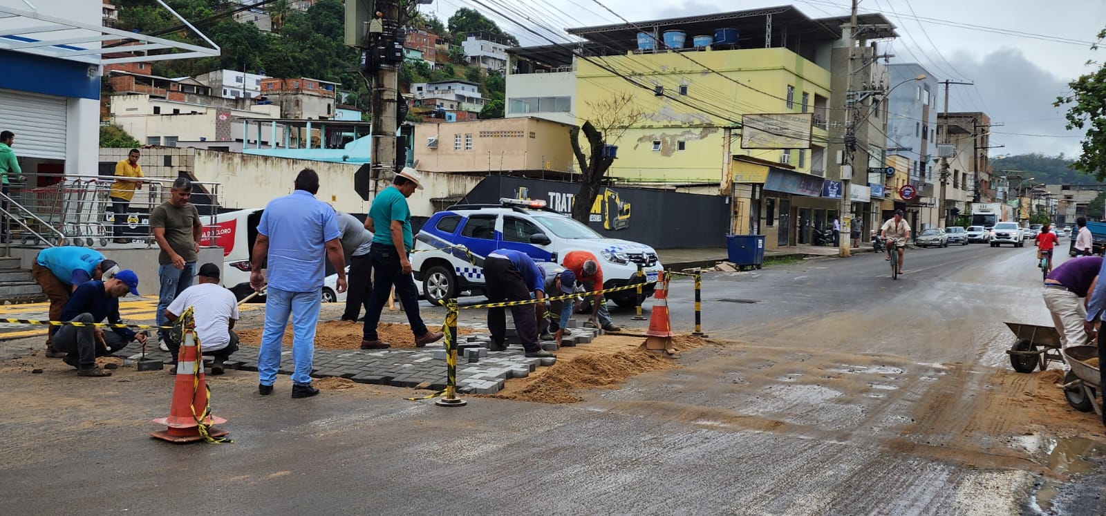 As secretarias municipais de Obras e a de Defesa Social e Trânsito (Sedestran), seguem trabalhando em conjunto na implantação da faixa elevada de pedestres, na Avenida Castelo Branco, no bairro Vila Landinha. A obra é acompanhada pelo secretário Municipal da Defesa Social, Valmer Simões, e o subsecretário de Obras, Adilson Perninha.