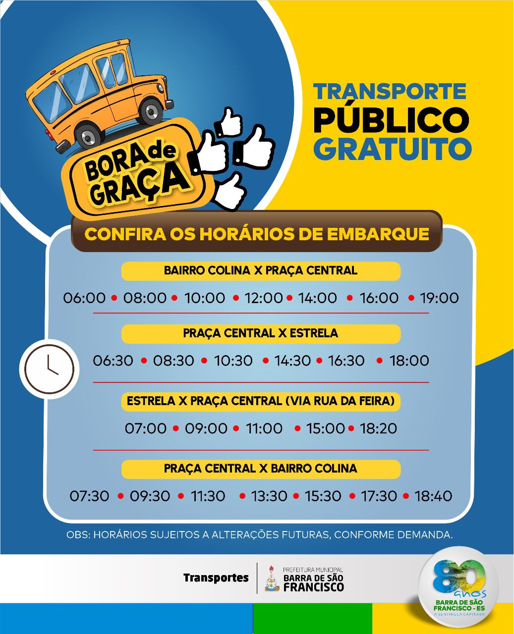 A partir desta quinta-feira, 2, os moradores dos dois bairros mais altos de Barra de São Francisco - Colina e Estrela - vão ganhar transporte público gratuito para irem trabalhar ou mesmo fazer compras no comércio.