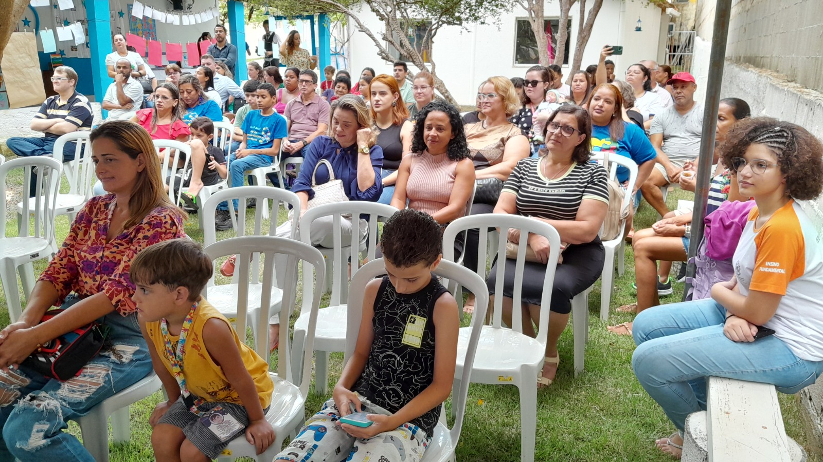 Alunos da Escola Adventista realizaram uma apresentação musical durante a cerimônia sobre igualdade e inclusão. Os pais e as crianças presentes gostaram e aplaudiram a atitude dos estudantes e professores.
