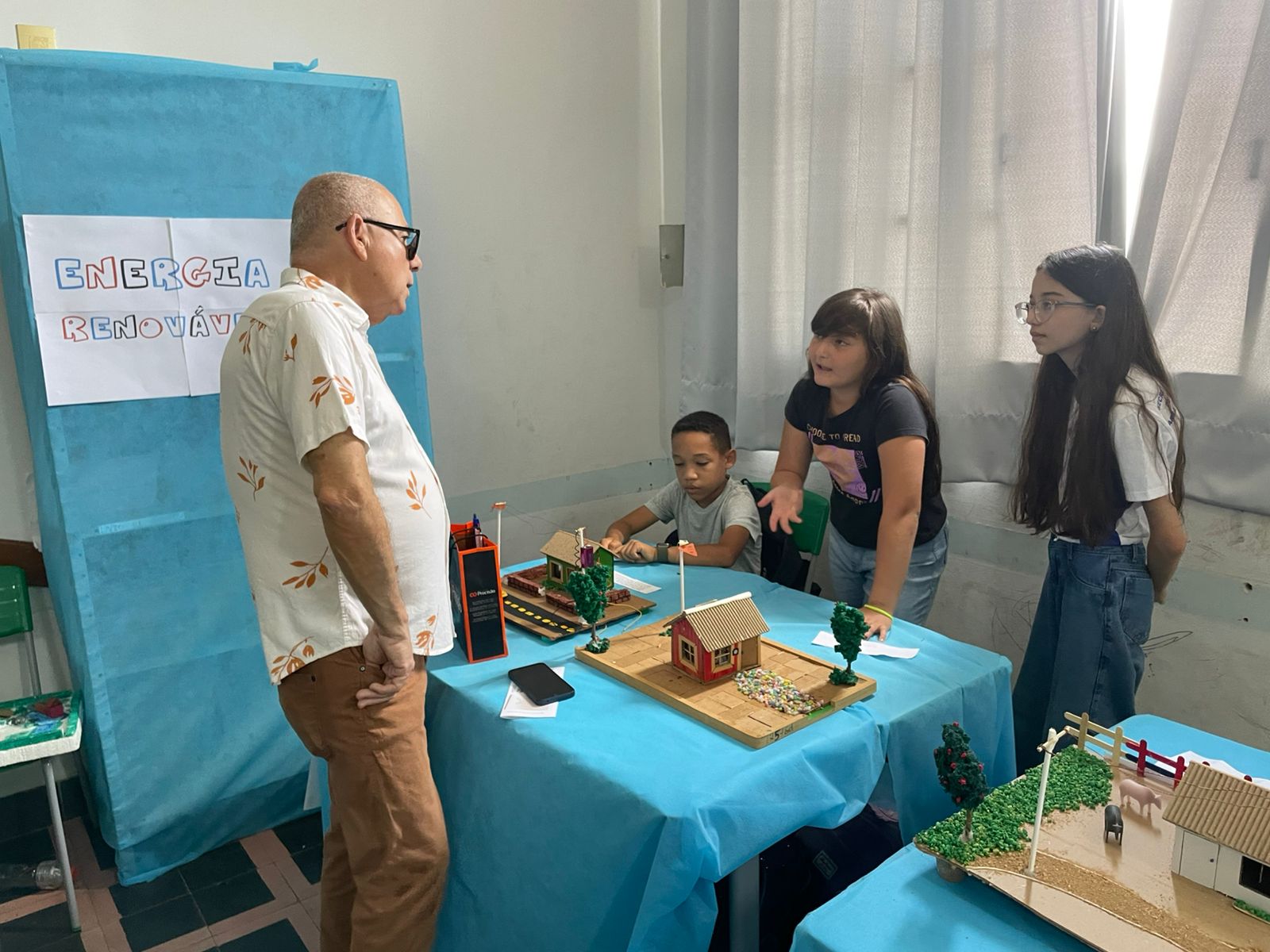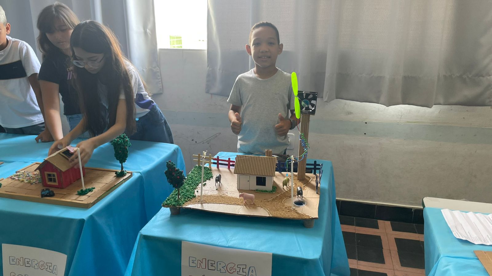 Murylo Samuel Felix Vitorino, de 11 anos e aluno do quinto ano, explicou a sua maquete construída com o auxílio do professor Alberto. "Eu e o Tio Beto trabalhamos nela desde o começo. Nela é demonstrado um pouco sobre a energia eólica, que consiste na energia gerada por meio do vento, onde usamos grandes hélices chamadas turbinas eólicas para transformar o vento em eletricidade", explicou o estudante.