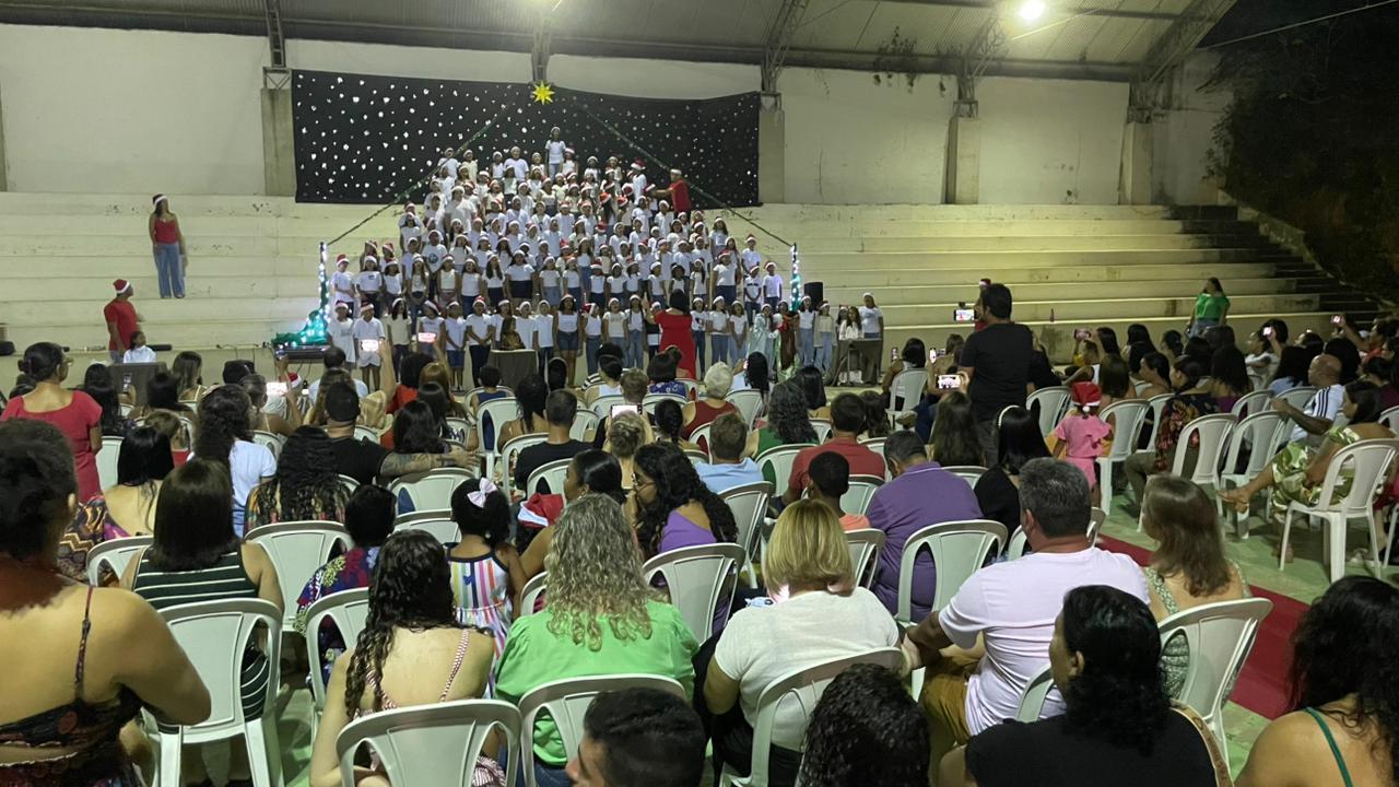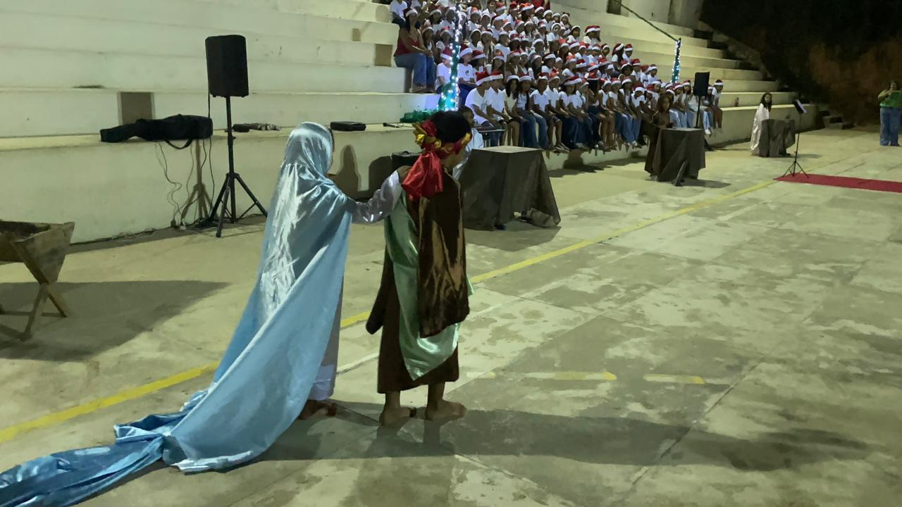 A Escola Municipal de Ensino Fundamental em Tempo Integral (Emefti) Ozeias Rezende, sob direção de Amilson José, realizou na noite dessa terça-feira (10), uma linda cantata de natal com alunos do primeiro ao quinto ano do Fundamental I. Esta é a terceira edição do musical, organizado pela pedagoga Rosa Amélia e regido pela coordenadora Patrícia Rosa Farias, que narrou a história bíblica do ‘menino Jesus’. E o espetáculo contou com a presença de muitos pais orgulhosos da apresentação dos pequenos, em especial do músico André Moura que participou do encerramento do musical.