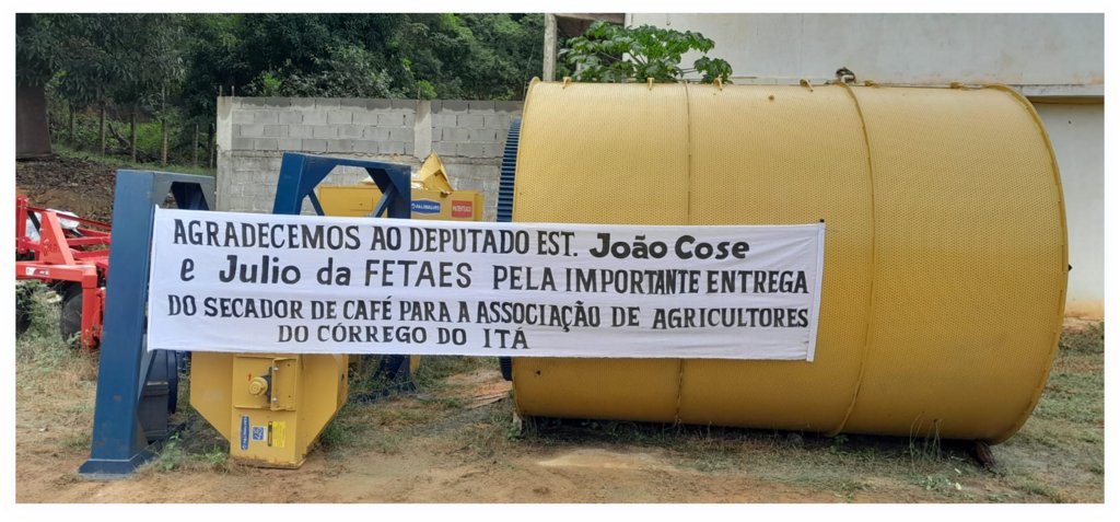 A Prefeitura de Barra de São Francisco, por meio da Secretaria Municipal de Agricultura, recebeu nesta sexta-feira (30) um secador de café que será destinado à Associação de Agricultores do Córrego do Itá, no distrito de Monte Sinai. O equipamento, entregue pela Secretaria de Estado da Agricultura, Abastecimento, Aquicultura e Pesca, foi adquirido por meio de emenda parlamentar do deputado estadual João Coser.