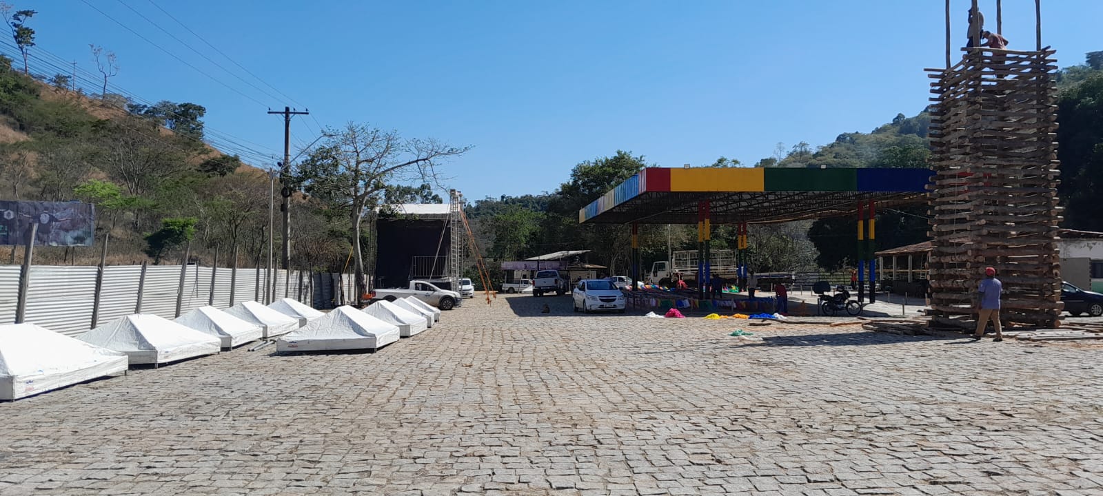 Os preparativos estão em avançado estágio de finalização, com palco armado, bandeirolas sendo erguidas, fogueira sendo armada e toda estrutura sendo preparada para receber você, sua família e seus amigos.