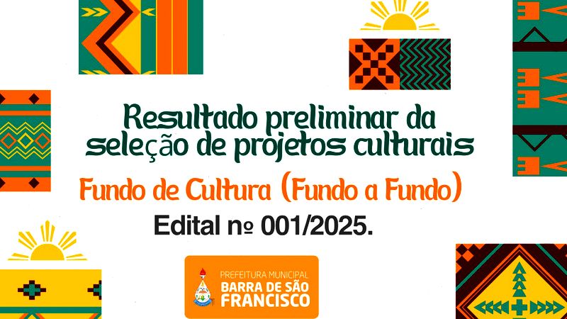 A Prefeitura de Barra de São Francisco, por meio da Secretaria Municipal de Cultura e Turismo, tornou pública a Ata de Resultado Preliminar da Comissão de Seleção de Projetos de Coinvestimento – Fundo de Cultura (Fundo a Fundo), referente ao Edital nº 001/2025.