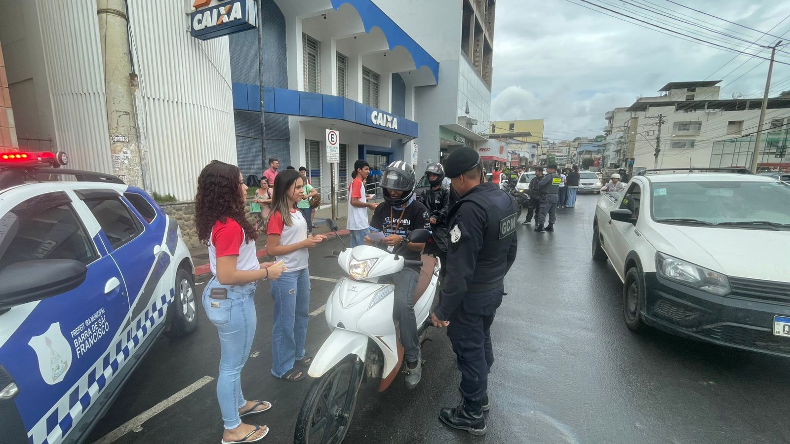 A Prefeitura de Barra de São Francisco participou, na tarde desta quinta-feira (09), com a Guarda Municipal e a Polícia Militar do Espírito Santo, de uma ação educativa com alunos do Ensino Médio do Centro Estadual de Ensino Fundamental e Médio em Tempo Integral (CEEFMTI) João XXIII. A iniciativa faz parte da disciplina eletiva “Projeto de Vida” e ocorreu na Avenida Edson Henrique Pereira, no ponto do semáforo da Praça Arlindo Pinto da Costa.