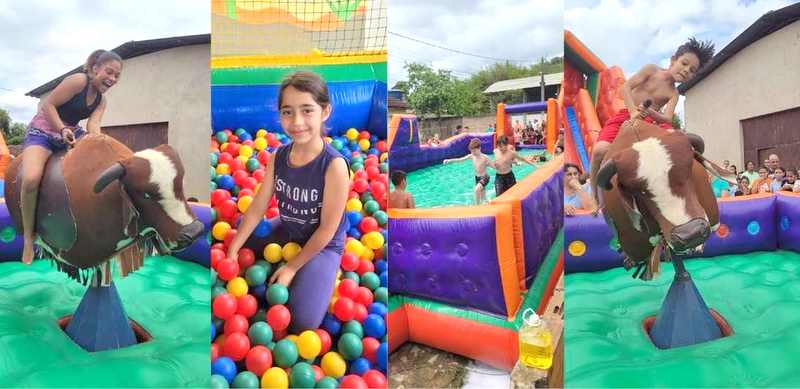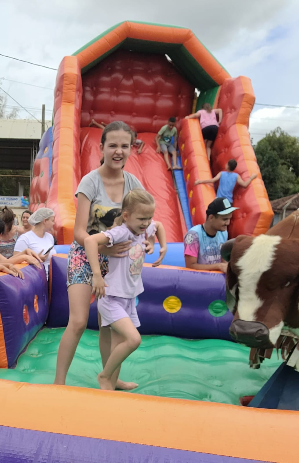 O evento, coordenado pela diretora Joana Montovanelli, transformou a escola e parte da rua em um verdadeiro parque de diversões, com brinquedos infláveis, touro mecânico, piscina de bolinhas, futebol na piscina de sabão, futebol de sopro, além de muita música, surpresas e alegria.