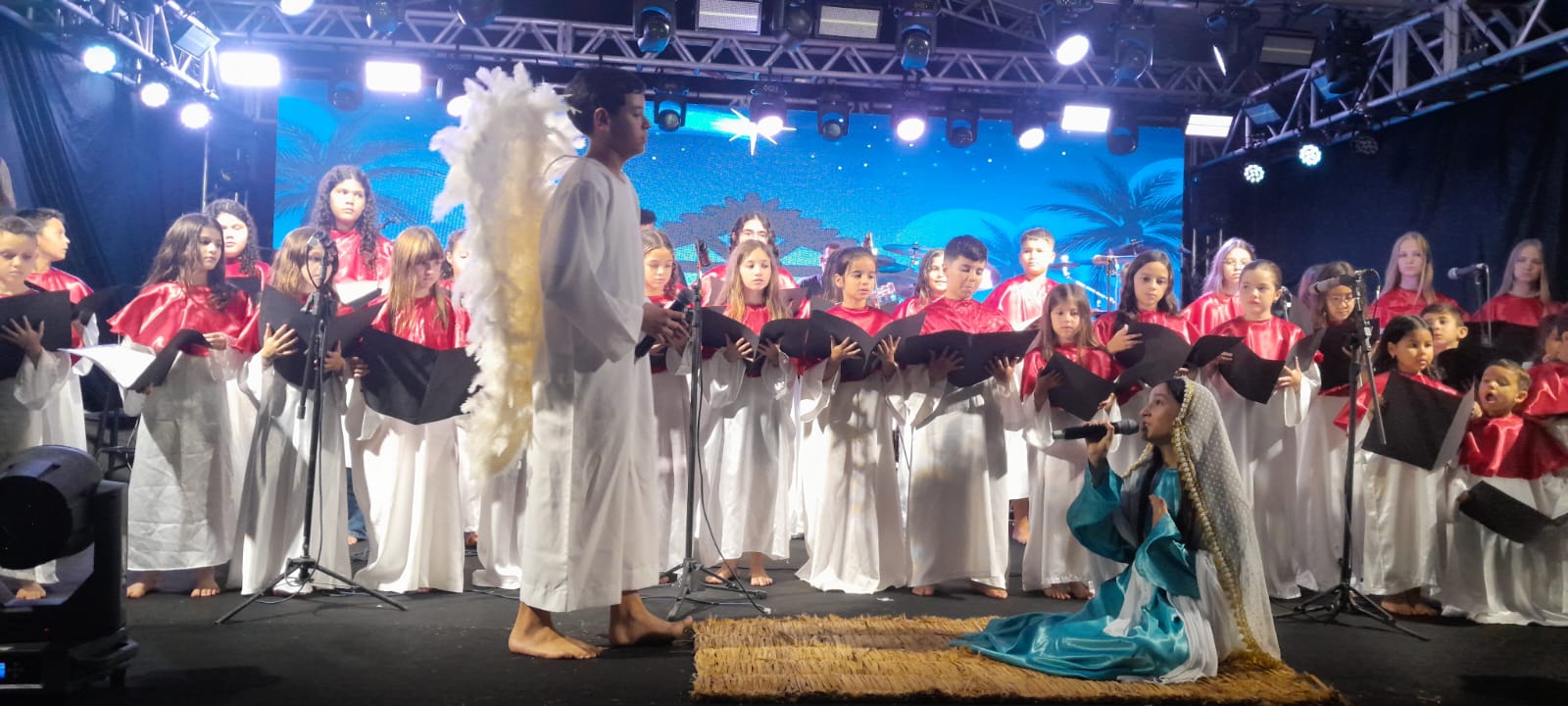 A abertura ficou por conta do Coral Infantil da Paróquia São Francisco de Assis, que emocionou os presentes com uma apresentação repleta de mensagens de esperança e espiritualidade. Na sequência, o cantor Fabiano Juffu encerrou a noite com um tributo a Roberto Carlos, interpretando clássicos que envolveram o público em momentos de nostalgia e emoção.