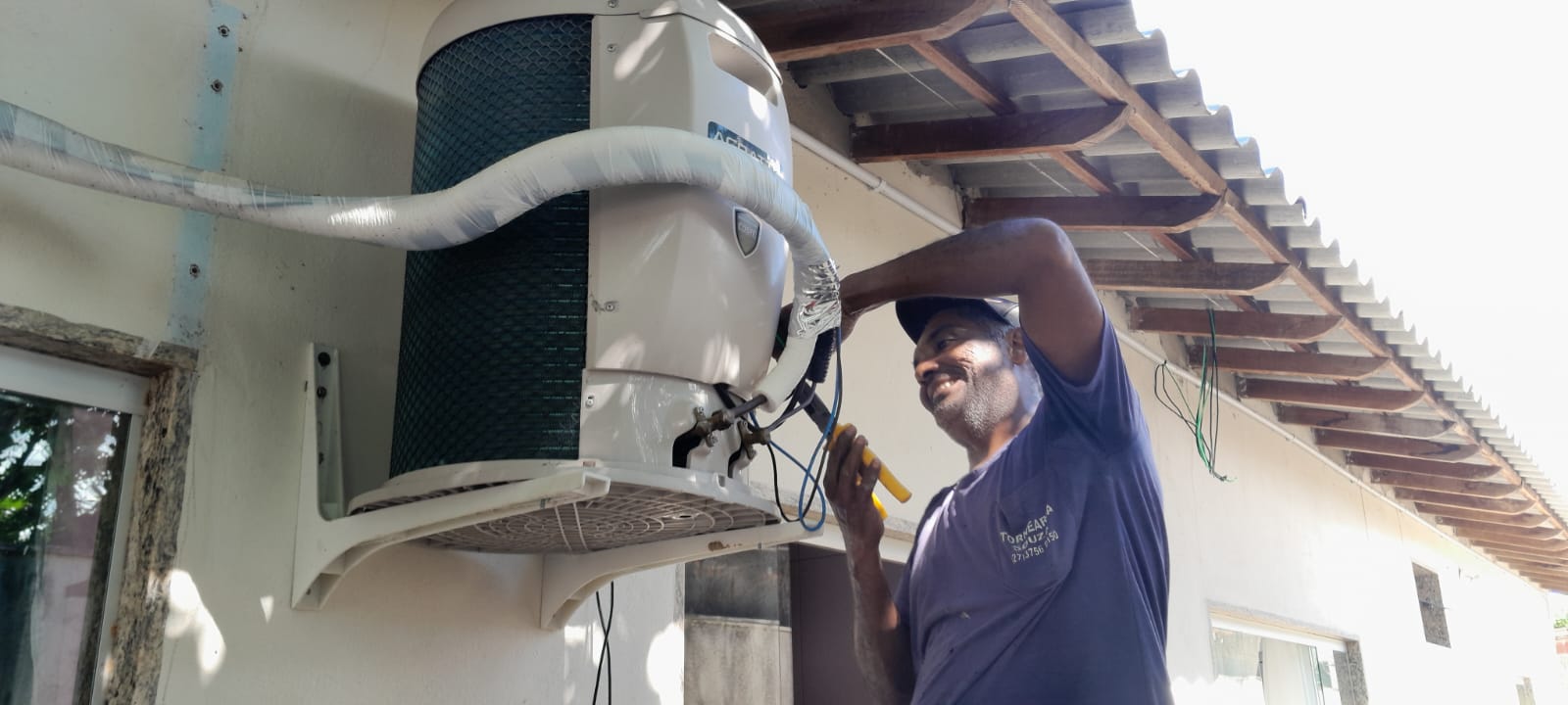 Para viabilizar o funcionamento dos equipamentos, a prefeitura realizou a instalação de um novo padrão de energia elétrica, assegurando a adequação da rede e o pleno desempenho dos aparelhos de ar-condicionado.