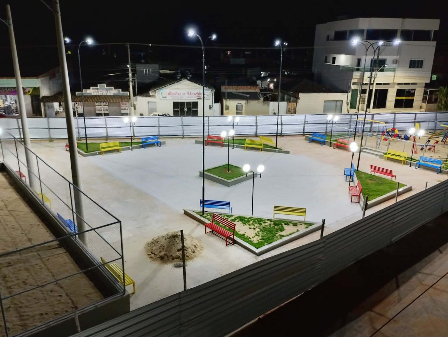 Um dos principais destaques da nova praça é o moderno sistema de iluminação, que valoriza o ambiente no período noturno, reforça a segurança e já tem recebido elogios dos moradores. O projeto foi planejado para oferecer mais conforto e funcionalidade, tornando o local ainda mais atrativo para famílias e visitantes.